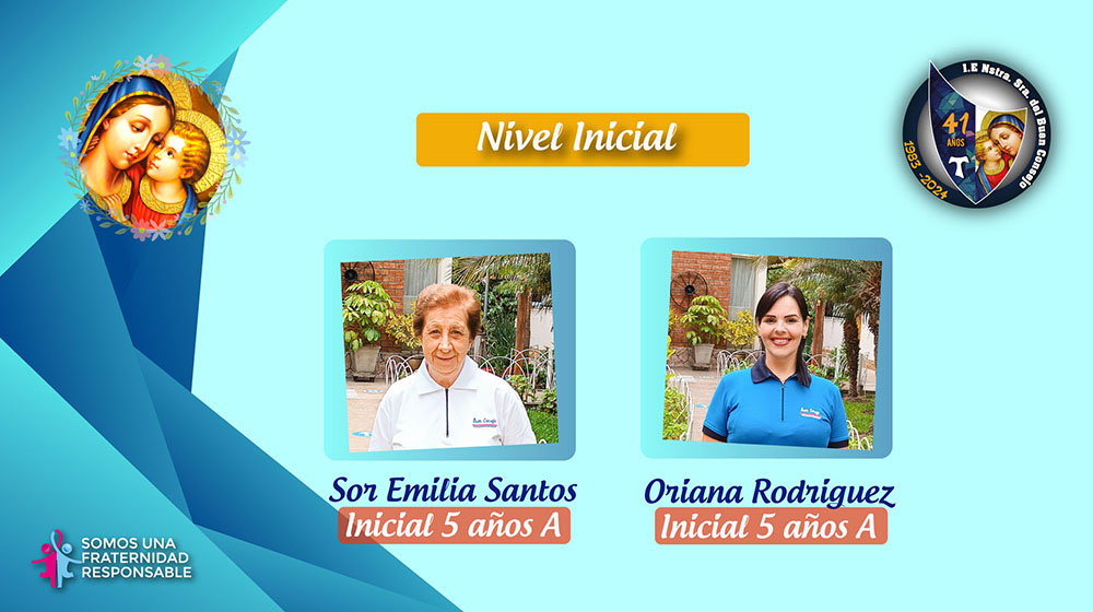 PERSONAL DIRECTIVODirectora GeneralSor Juana Jorge GarcíaSub Directora AdministrativaSor Emilia Santos SantosEquipo Directivo Item de carrusel 01Directora GeneralSor Juana Jorge GarcíaItem de carrusel 02Sor Emilia Santos SantosSub Directora AdministrativaItem de carrusel 04Lic. Rosa María Torres TorresJefe de Norma y ConvivenciaCoordinadora de TutoríaItem de carrusel 03Juan Antonio Ruiz GutiérrezCoordinador de PastoralCoordinaciones Item de carrusel 03Mg. Lourdes Echavigorín VargasCoordinadora de 5to de primaria a 5to de secundariaItem de carrusel 04Mg. Mónica Dávila Paz Coordinadora de Inicial a 4to grado de PrimariaCoordinadora de ActividadesItem de carrusel 02Juan Antonio RuizCoordinador PastoralPersonal Educativo Inicial Primaria Secundaria Administrativo Asesorías